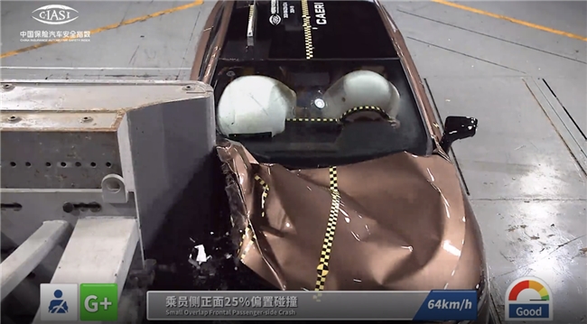 [25%偏置碰撞测试,EZ-6乘员舱未变形,气囊防护到位]