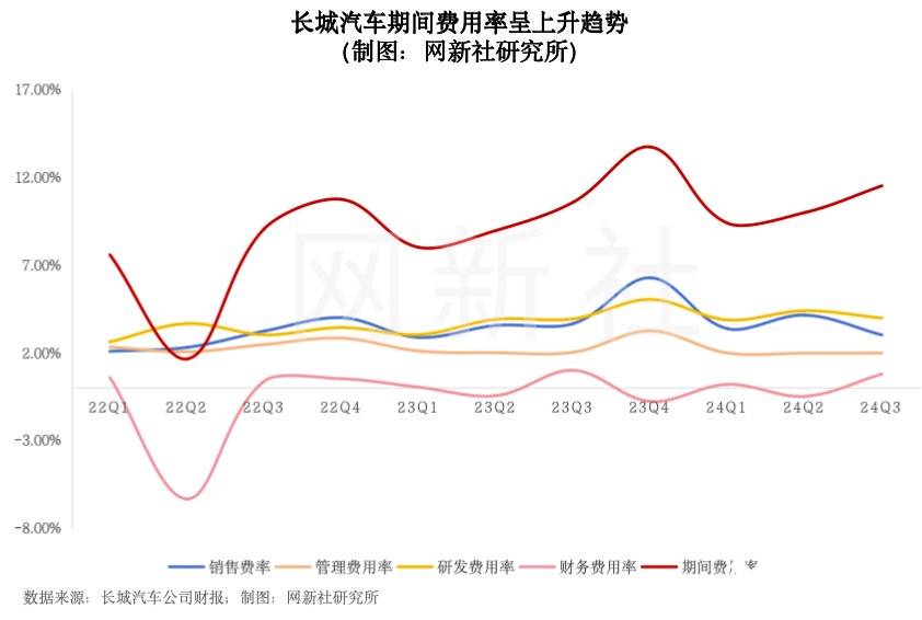 根据财报,长城汽车三季度期间费率为11.6%,其中,销售/管理/研发/财务费用率分别为4.8/2.0/4.0/0.8%。