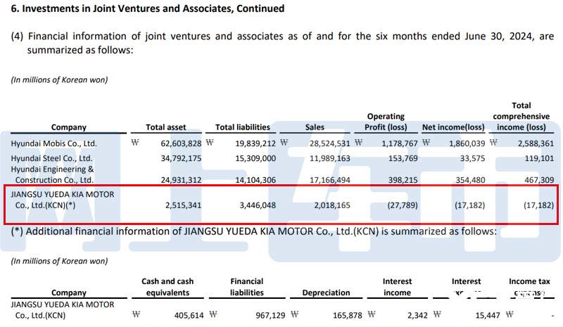 截至今年6月30日,悦达起亚营业利润为-277.89亿韩元(约人民币1.46亿元),净利润-171.82亿韩元(约人民币-9020万元)。