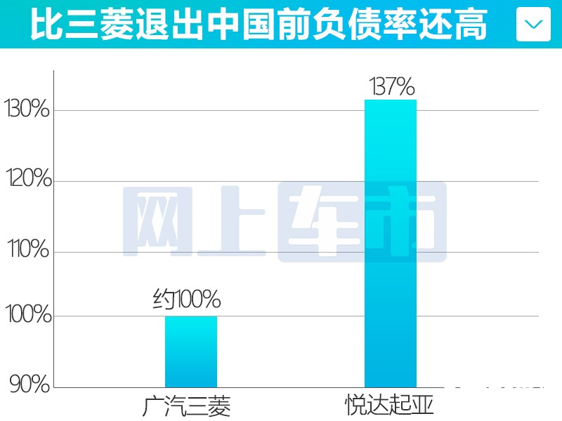 以去年退出中国市场的三菱汽车为例,其在华合资公司广汽三菱在2022年底的负债率还不到100%。相比之下,悦达起亚如今的处境更加危险!