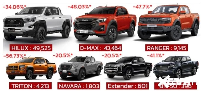 泰国皮卡市场今年以来销量下滑严重,并且是全车型的集体惨淡,但这对于国产皮卡来说既是挑战更是机遇,在市场空白期如果能够在当地推出一款高性价比车型势必能够更快得到当地用户认可进而迅速占领市场高地。传统来看,泰国等东南亚市场对日系皮卡更为偏爱,甚至会被改造成低趴跑车皮卡进行直线竞速,相信随着国产皮卡的迅速崛起,未来能够以更为强大的产品实力角逐日系皮卡。